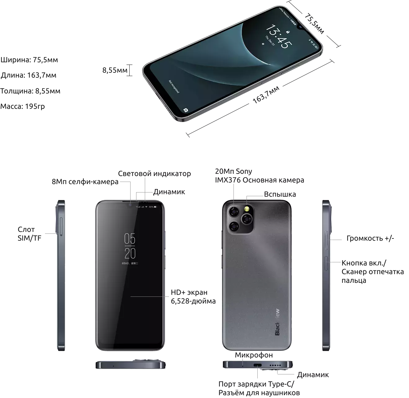 Эстетика и стиль, комфорт и мобильность. Толщиной всего 8.55мм и весом 195гр, каждое прикосновение к Blackview A95 стало очень приятным.