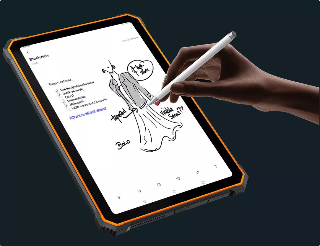 В комплекте Blackview Active 8 Pro присутствует стилус, который позволяет легко и интуитивно фиксировать надписи, делать пометки на изображениях, рисунках, картах или таблицах, набрасывать скетчи.